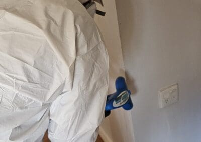 Our technicians arrive in full PPE, including respirators, gloves, and protective suits. We carefully evaluate the environment to identify contamination zones and hazards such as sharps or body fluid exposure. - Containment and Removal